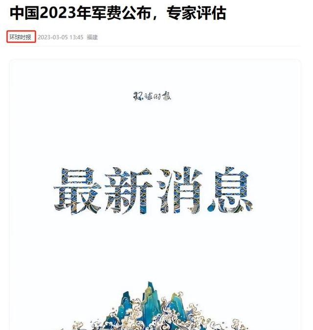 信源:环球时报 2023年3月5日关于“中国2023年军费公布,专家评估”的报道