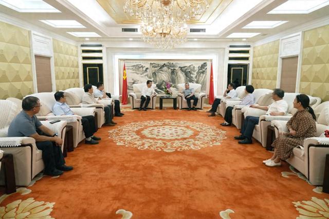 8月29日,山东大学副校长曹现强、人文社科研究院院长郑敬斌、艺术学院副院长姚榕华一行来校,就中国石窟文化联合研究生院工作机制和人才培养以及人文社科科研情况进行调研。校党委书记王仰麟、校长黄桂田会见了曹现强一行。副校长程芳琴、孙岩、郝平陪同调研。