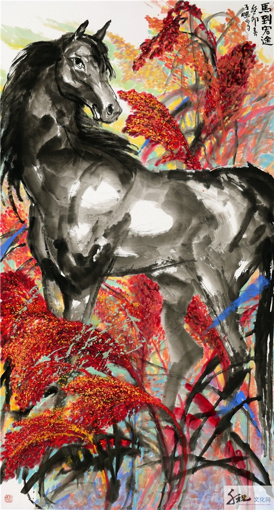 道是代代传,法是代代破。跪着学传统,站着画自己。笔墨当随时代,李子鹏,找到了自己的精神寄托——红高粱。红高粱是人与自然契合的象征,她象征着坚韧、自强、淳朴、狂放,同时也象征着伟大民族的血脉、灵魂和精神,也代表着中国传统文化和乡土情怀,成为他借自然造化书写心中之美的主角。