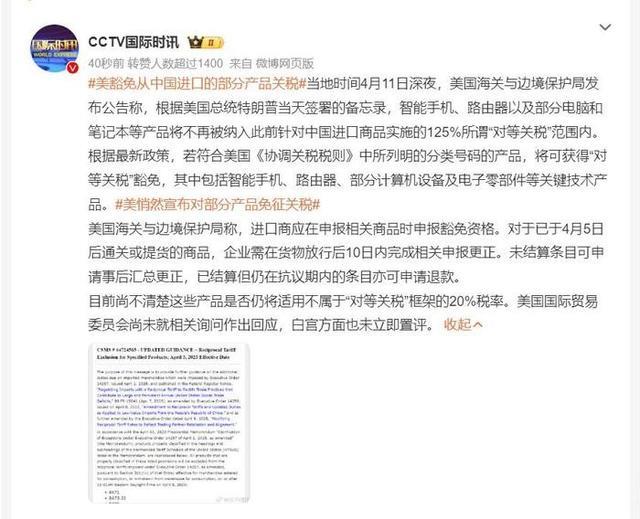 此消息一出,很多人欢呼特朗普终于“服软”了,美国的一些高科技企业的股价也开始上涨。那些为此高兴的人,也别高兴太早。特朗普目前只是豁免了部分商品的“对等关税”,其它商品的关税还没有豁免了。