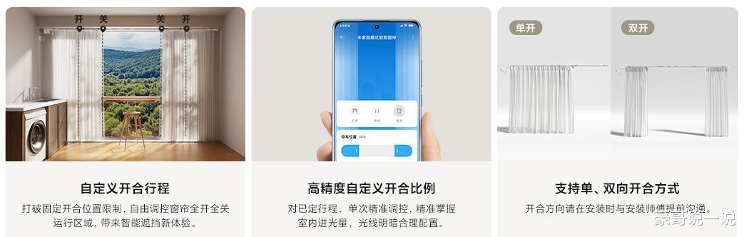 通过米家App,你可以远程控制窗帘、设置定时开合,配合WiFi模块,还能实现进出门自动开合等智能场景。