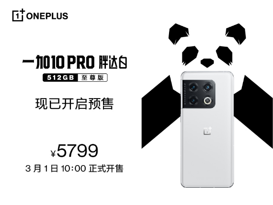 2月21日,一加官宣一加 10 Pro 胖达白 512GB 至尊版即将上市。新版本设计上采用优雅温润的陶瓷白新配色,更配有 12GB+512GB 超大存储组合,满足了用户对性能存储的顶级需求。一加 10 Pro 胖达白512GB 至尊版现已开启预售,3月1日全渠道正式开售,售价 5799元。