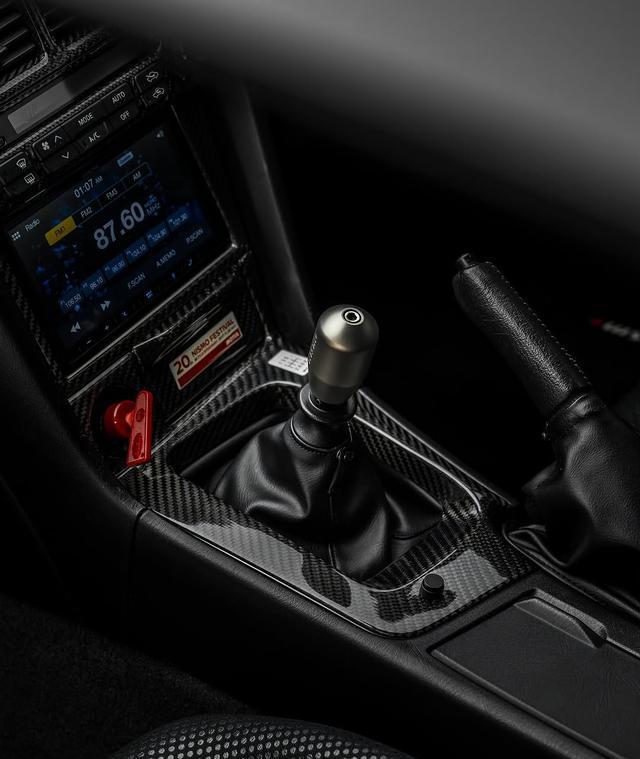 内饰方面,这辆车也是精心改装过的。内饰经过了重新翻新,方向盘换成了Nismo方向盘,中控台也变成了碳纤维材质的,再加上原车就配备的半桶式座椅,整个驾驶座舱都充满了战斗氛围。我还采访了一位汽车内饰专家,他说:“这种改装不僅提升了车内的美观度,更重要的是提升了驾驶体验。比如这个碳纤维中控台,它不僅看起来很有科技感,而且在实际使用中也很耐用。”另外,车辆还装上了各类的Nismo配件,像Nismo的钛合金前顶吧和Nismo的碳纤维进气箱,就连换挡杆也是Nismo钛合金的。这些小细节都体现了这辆车的独特之处。