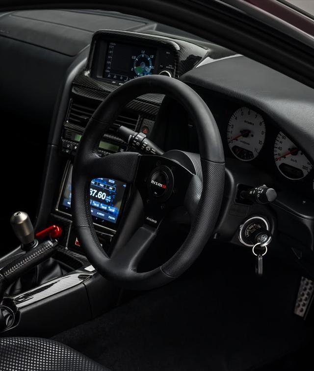 咱们先来说说这辆车的动力系统。这辆GT - R R34 V - Spec II CRS采用了Omori Factory升级的R2 2.8L直列六缸涡轮增压引擎。这个引擎可不得了,最大马力能达到450Hp,扭矩为475Nm。它匹配的是6速手动变速箱,再加上日产当年最先进的ATTESA E - T S Pro四驱系统。这个四驱系统就像是一个智能大脑,可以根据路况和驾驶状态动态调整前后扭矩分配,从而提升操控性和抓地力。我专门查了一些资料,同价位的一些跑车,动力可能就没有这么强劲。比如说某款同价位的跑车,最大马力可能只有300多匹,在加速性能上就和这辆GT - R差了不少。这辆GT - R的0 - 100 KM/H加速仅为4.8秒,最高时速可达255KM/H。这样的速度,在马路上那绝对是相当拉风的。