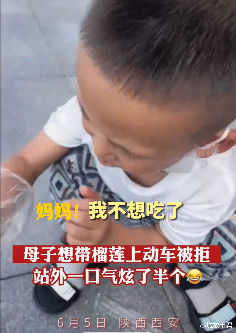 薛女士也没听说过坐高铁不能带榴莲,所以一时不知道该怎么办。这时候儿子提议:要不我们把榴莲吃了吧?