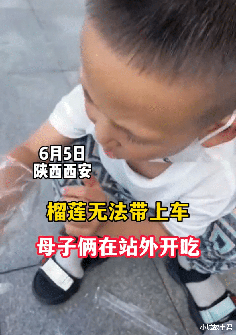 于是,薛女士和儿子在车站外一口气吃了半个。一开始儿子还吃得津津有味,吃了半个之后,原本非常喜欢吃榴莲的儿子表示真的吃不下了。薛女士最后把剩下的半个榴莲送给了路人。