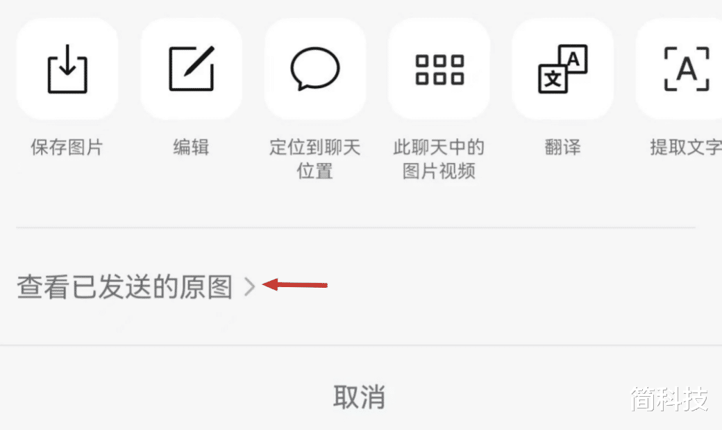 在保存原图后打开并长按图片,或点击右下角的三个点进入详情页,现在下面多了一个「查看已发送的原图」,点击后可查看系统中的原图或原视频。