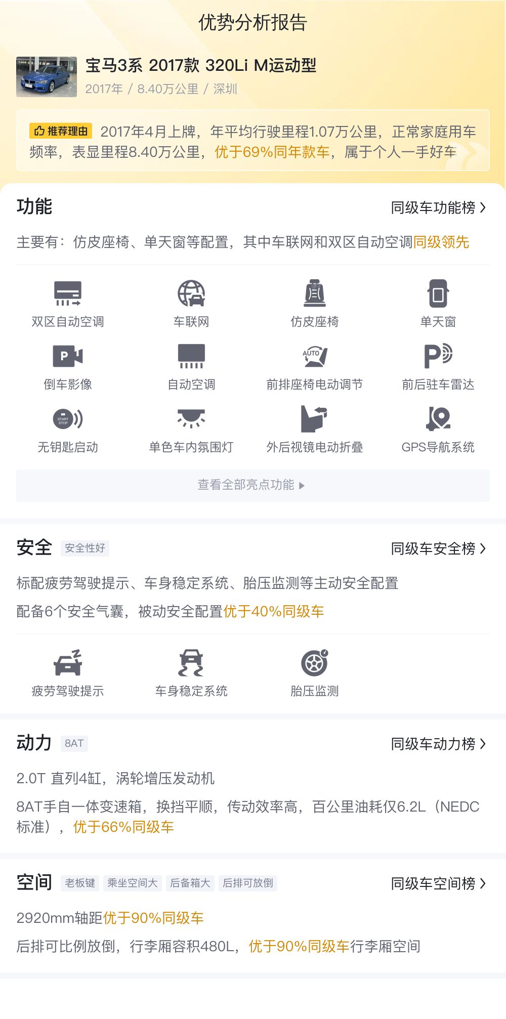 在优势分析方面,除了车辆本身的配置和性能外,这款车在二手车市场上的保值率也相对较高。此外,车辆的外观设计、内饰材质以及驾驶感受等方面也得到了众多用户的认可。