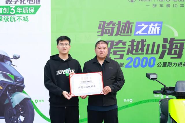 11月4日,由绿源经销商自行发起的“骑迹之旅 跨越山海”绿源数字化电池旗舰产品2000公里耐力挑战赛圆满成功。