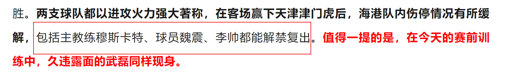 2025赛季中超第8轮的时候喜欢武磊、喜欢海港的球迷就好像过年一样,因为穆斯卡特说,武磊可以有球训练了,能否上场,比赛当天中午再说。