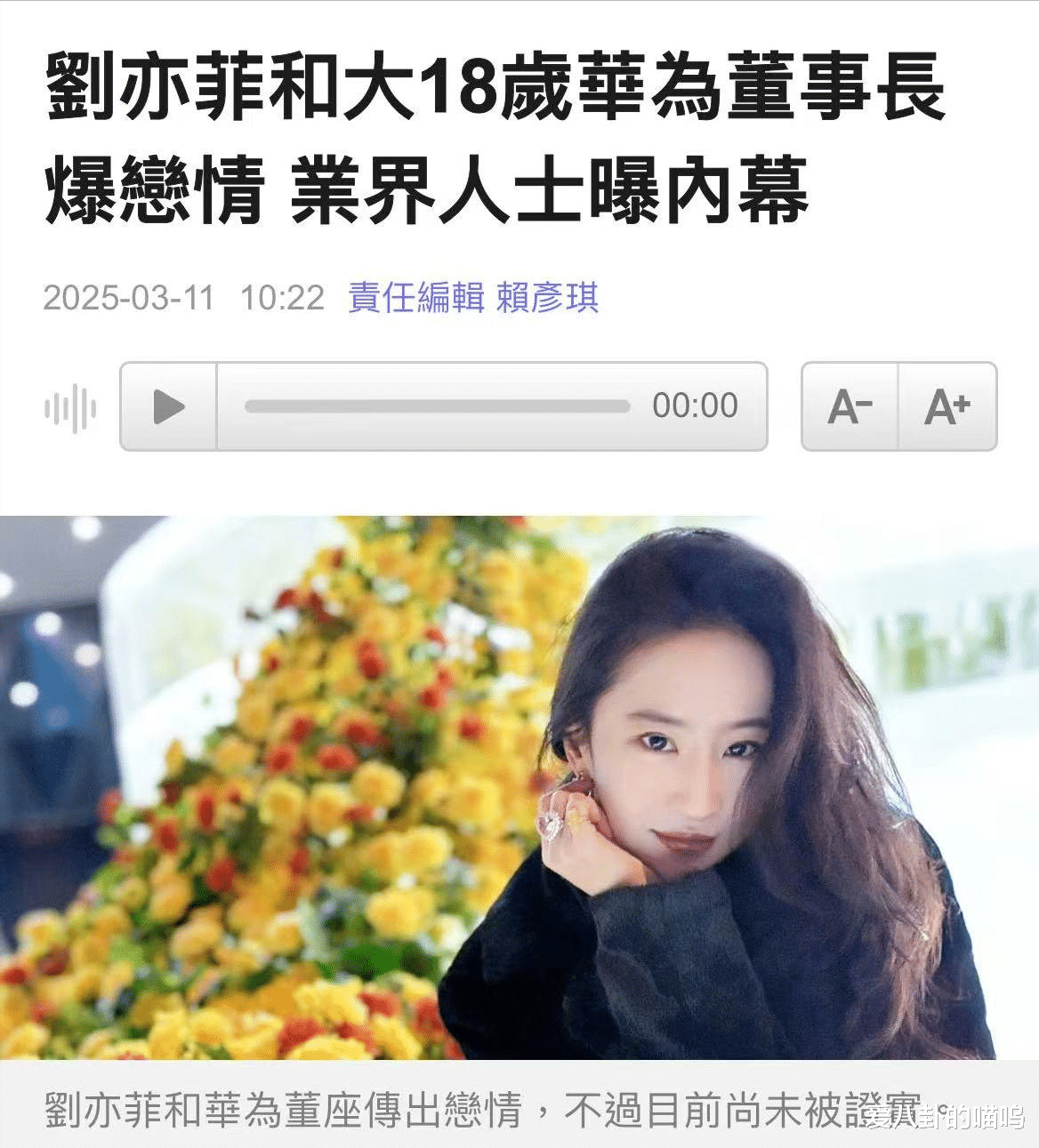 离大谱,刘亦菲被台媒体曝光恋情,而且绯闻对象还是华为董事长余承东。