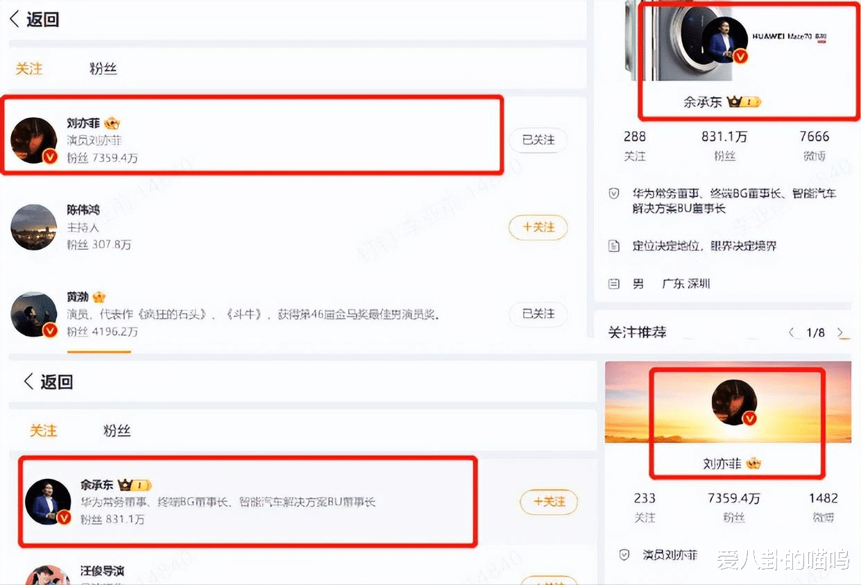 3月8日,刘亦菲与余承东的微博互关及点赞事件,就曾经引发热议。