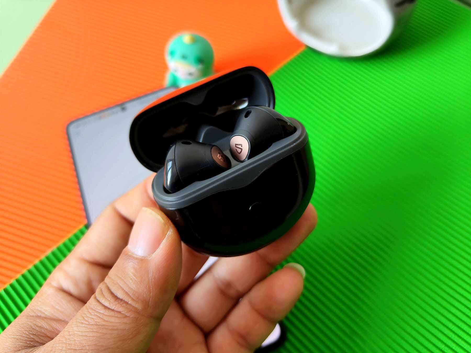 泥炭Air4 Lite是一款半入耳式的蓝牙耳机,耳机大面积均为黑色设计,内侧为亮黑色,其他位置为磨砂黑色,除了黑色外,耳机外侧是泥炭耳机标配的金属logo,这个logo既起到装饰作用同时还指明这个位置是触控区,可以通过触控操作音乐的播放。