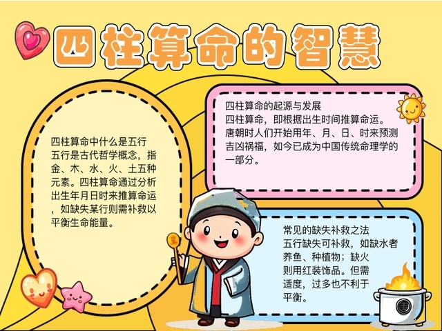 四柱算命中的五行缺失查询,是基于个人生辰八字(即出生年、月、日、时的天干地支)来进行的。以下介绍五行缺失的查询方法与相关案例。