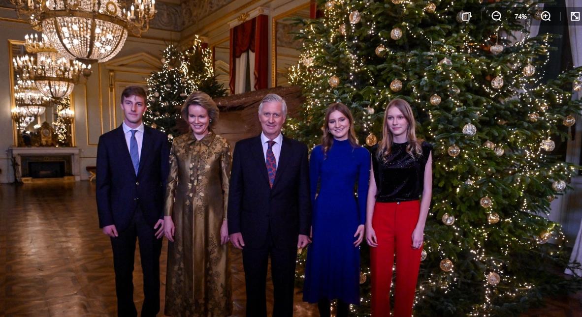 比利时王室一家最新圣诞照也少了一个人,一家六口变成一家五口站在一棵超大圣诞树前面,过节的氛围感很浓,相比前几天晒出的圣诞贺卡照,像个过节的样子了。