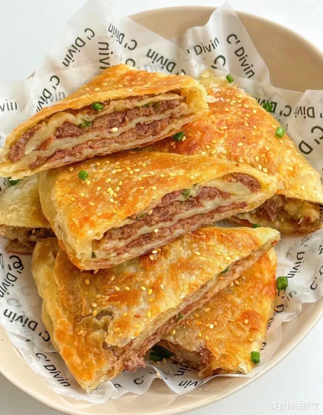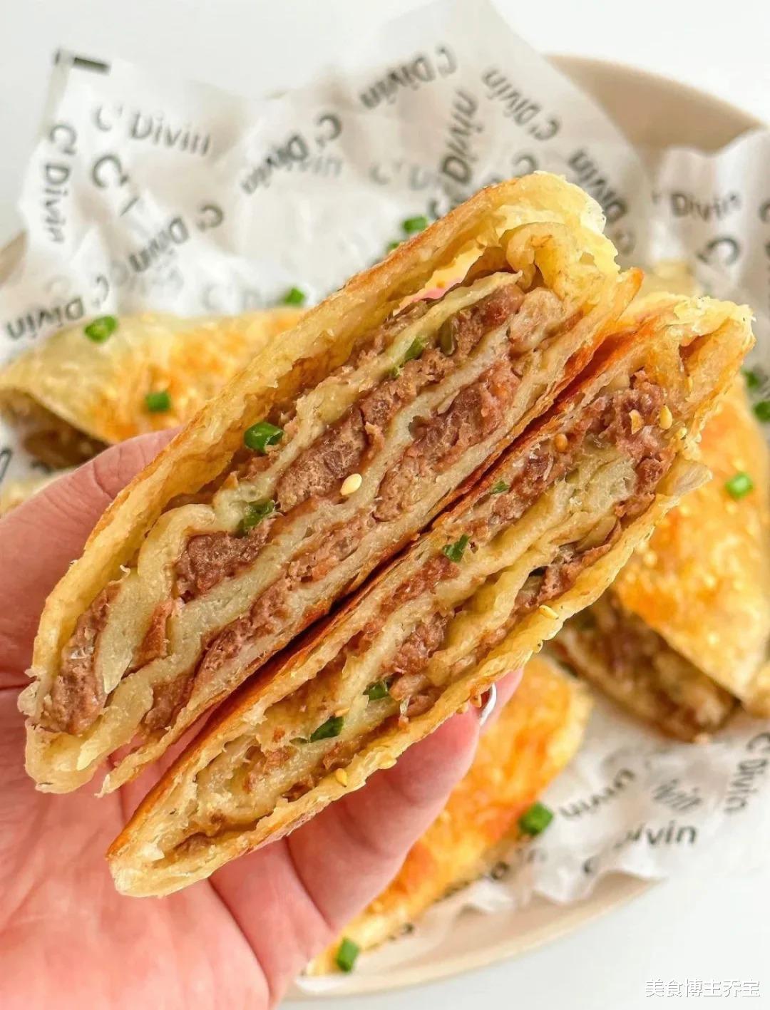 外皮酥脆,一口咬下去能听到“咔嚓”的声音。而内部由于是层层叠叠的结构,每层饼皮之间夹着牛肉馅料,饼皮柔软有嚼劲,牛肉鲜嫩多汁。这种软、脆、嫩相结合的口感,让人越嚼越香。在品尝时麦香和牛肉香相得益彰,不会互相掩盖,每一口都能感受到丰富的味觉体验。