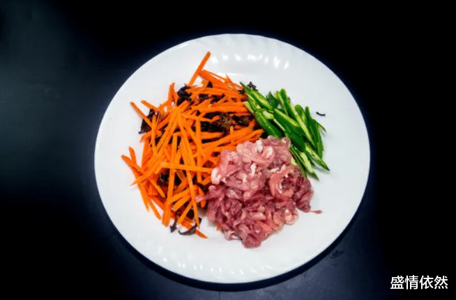 食材准备主料:猪里脊肉200g、胡萝卜1根、青椒1个、木耳(泡发后)适量