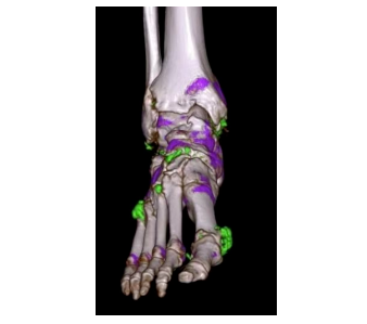 通过高低双能量扫描,可区分钙化、尿酸结晶、脂肪等成分,精准定位痛风石、肾结石成分,辅助制定个性化治疗方案。 肿瘤活性分析、心肌缺血评估等功能,为肿瘤治疗随访及心血管疾病诊疗提供分子级信息。