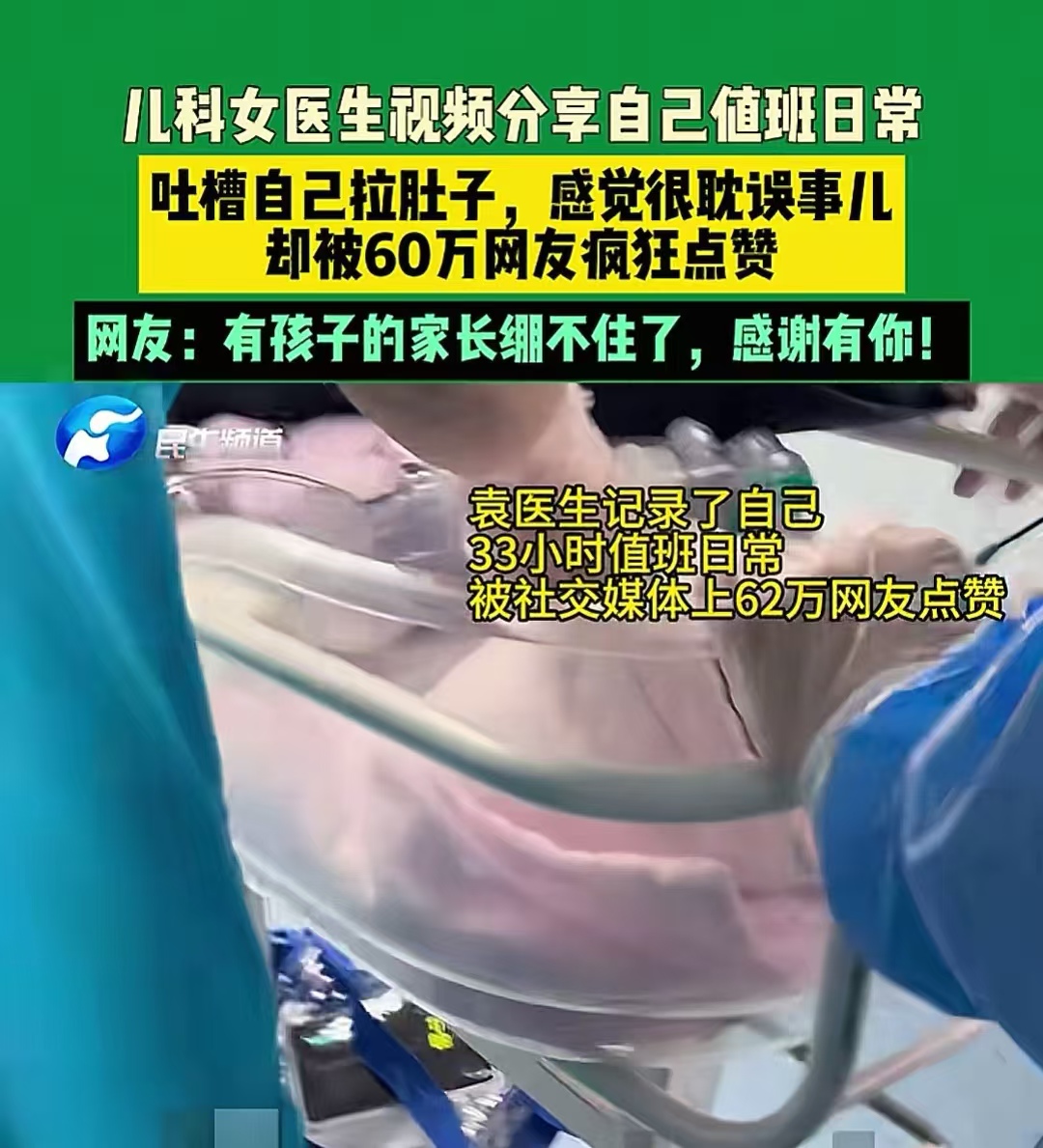 家人们谁懂啊!小儿外科医生袁宇航在工作时突然腹痛拉肚子,她发了条视频吐槽自己"拉肚子没眼力见",居然上了热搜!这条60万人点赞的视频,表面看是白衣天使的敬业日常,实则戳中了全网社畜的终极爽点——原来医生也有满满的求生欲!