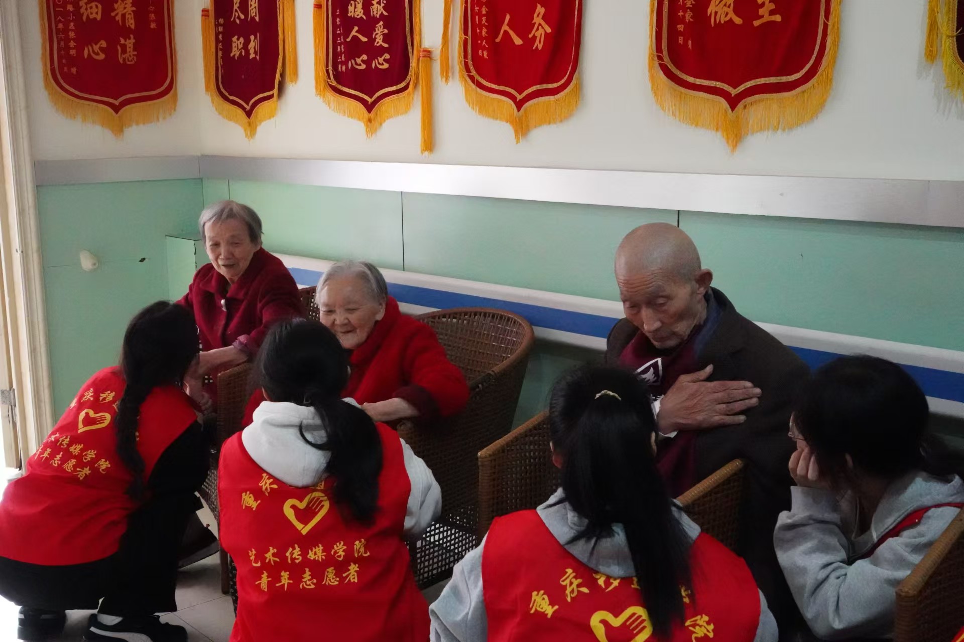 为提高预防疾病意识,营造和谐温暖的养老院氛围,增强新一代青年的责任感和服务意识。2024年11月3日14:30重庆移通学院艺术传媒学院青年志愿者协会在长者乐养老服务中心开展了以“莫道桑榆慰晚晴,走访敬老暖人心”为主题的志愿活动。