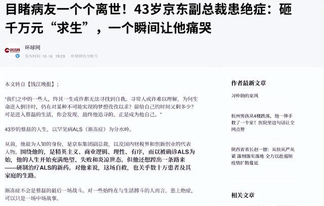环球网2021-10-16目睹病友一个个离世!43岁京东副总裁患绝症:砸千万元“求生”,一个瞬间让他痛哭