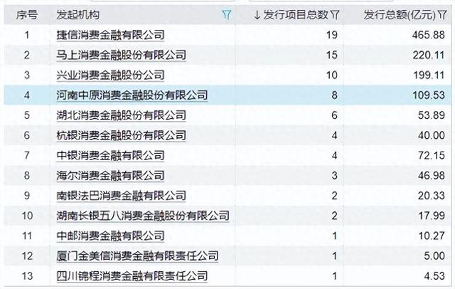 据Wind统计,已开业的31家消费金融公司中,仅有马上消费金融、兴业消费金融、中原消金等13家发行过ABS,仅有招联消费金融、中银消费金融、中原消金等9家发行了金融债。