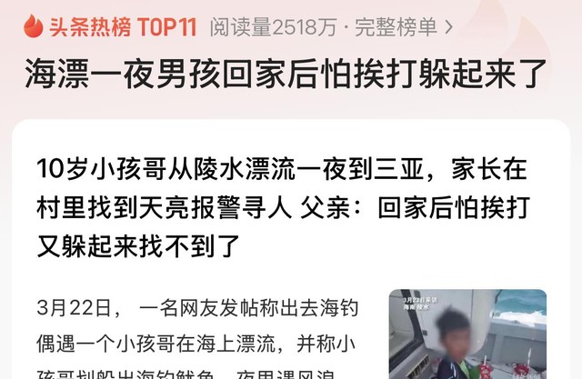 小孩哥虽然漂流了近一天的时间,途中海风疯狂肆虐,但是他的脑子也是异常清醒。