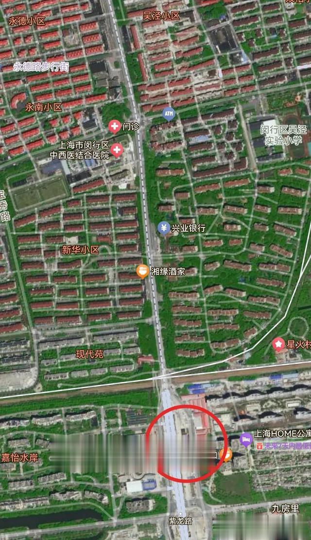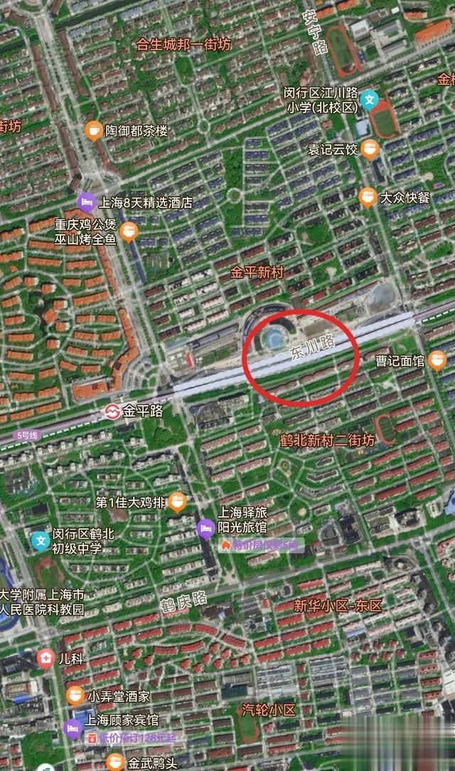 这个华东师范大学站,具体位置是江川东路和虹梅南路交叉口的东边,紫竹半岛别墅区的北门外,华东师范大学附属闵行小学的南侧,见上图。