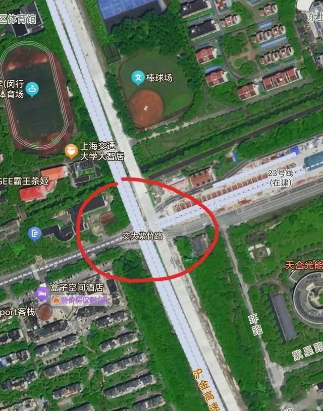 地铁23号线新建的交大紫竹站位于沪金高速和东川路的交叉口。