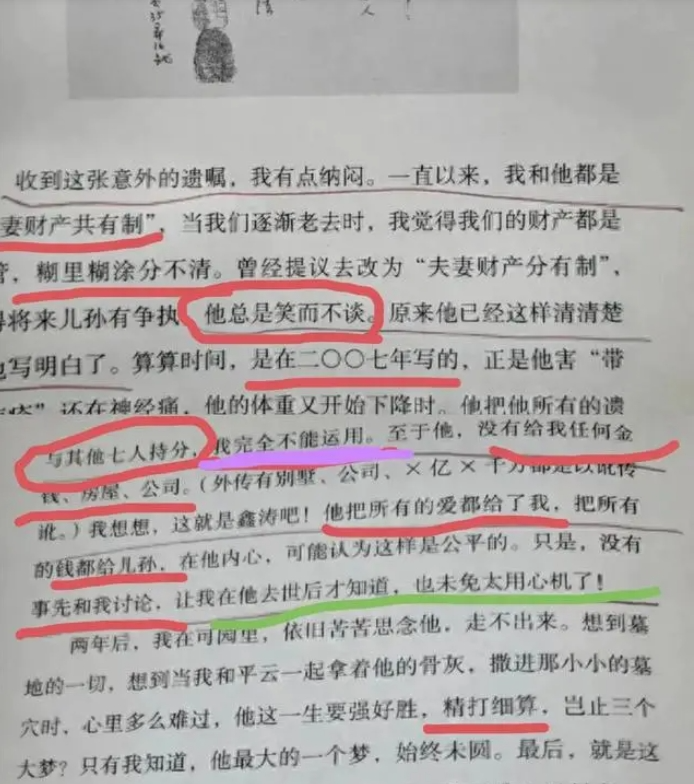 而平鑫涛在离世之前就已经写好了遗嘱,而琼瑶也是最后一个知道的。‘