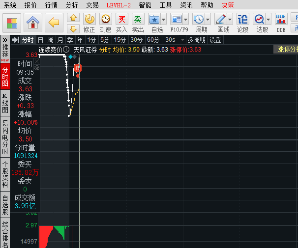 2、天风证券:3连板,证券龙头。开盘给到了非常有性价比的关注机会,这么好的机会必然是要关注的。以今天金融的拉升力度,明天一字或T字预期。