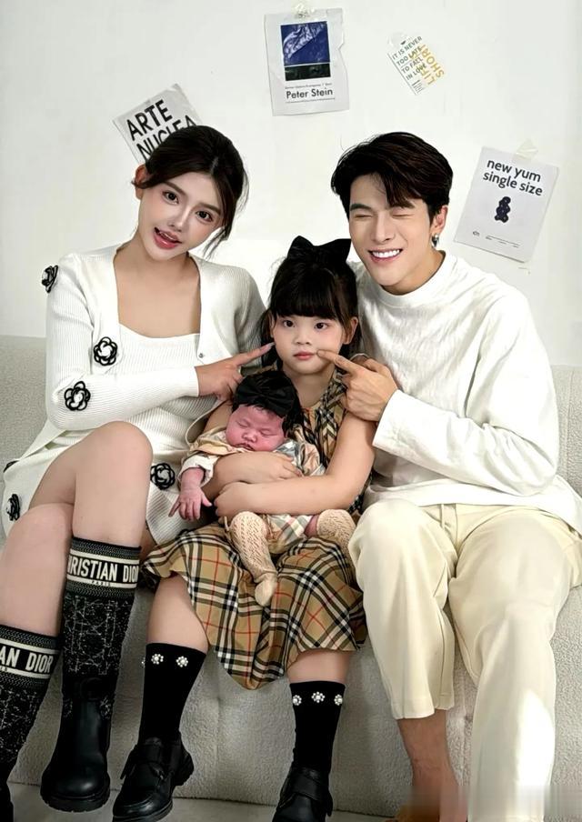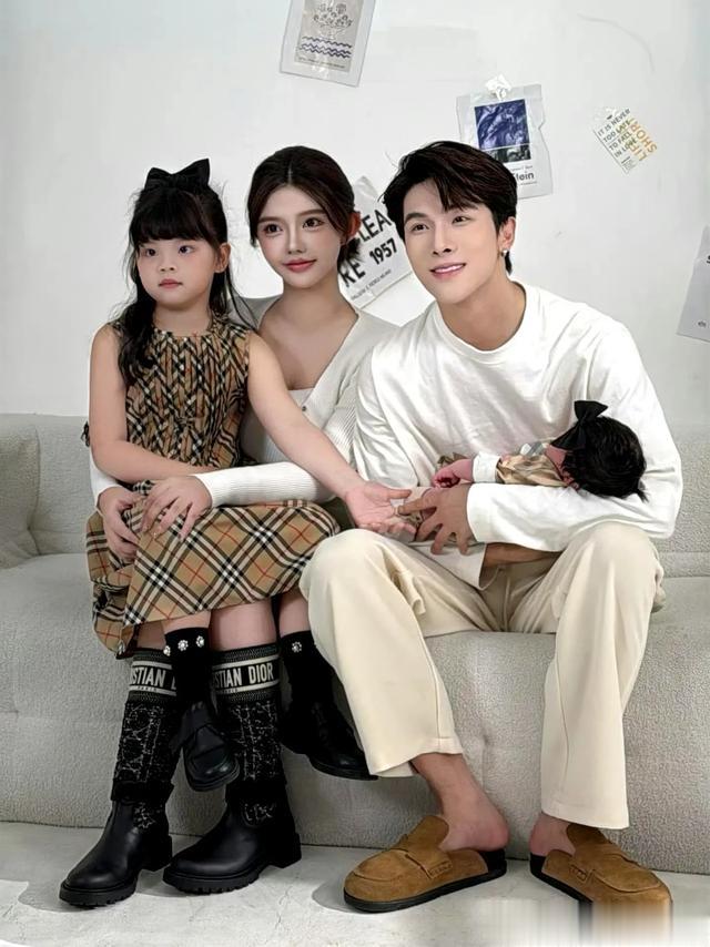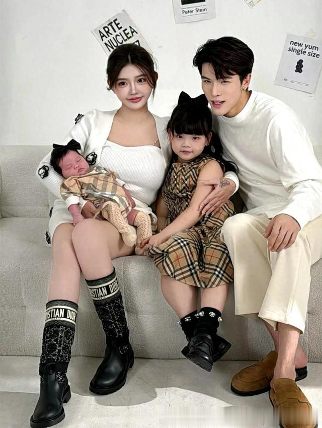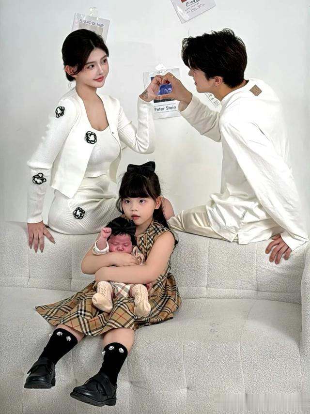 韩安冉抱着大女儿小猪妹,宋浩然抱着小女儿优米,一家四口整整齐齐坐在照相馆沙发上,看着很美好,小猪妹很喜欢这个同母异父的妹妹,坐在妈妈怀里也不忘抚摸妹妹的小胖脚丫。