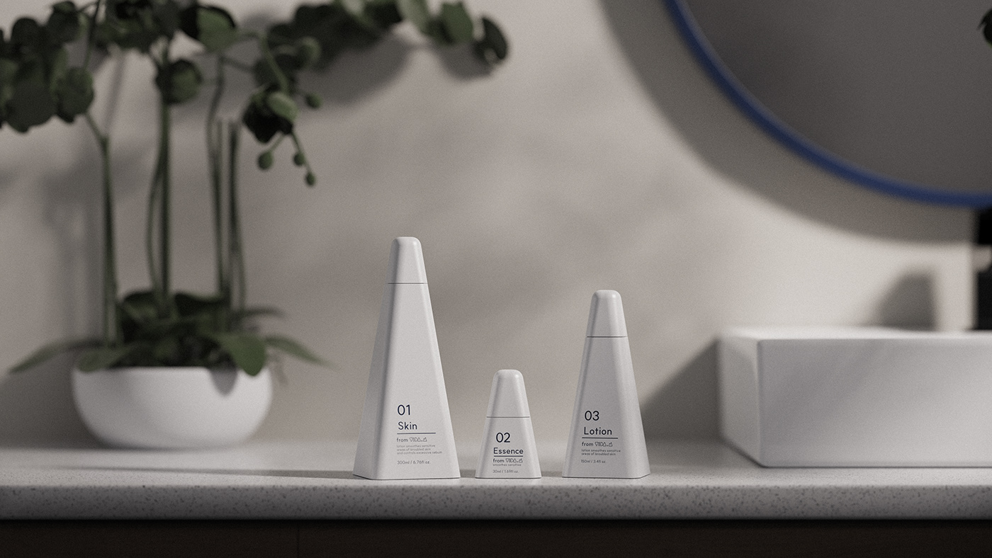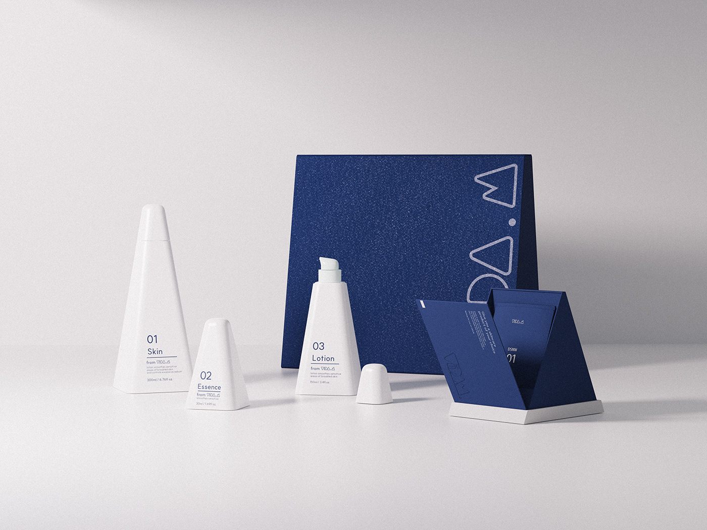 VIDA.M品牌是一个专门针对男性的护肤品牌。瓶子采用三角形设计,线条流畅且具有现代感,更显个性,符合男士追求独特的审美。瓶身以简洁的白色为主色调,白色纯净、简约,传递出产品温和、纯净无添加的特质,契合男士对于护肤品清爽、简约的心理需求 ;包装盒为蓝色,展现出深邃、稳重的感觉,与男性成熟、可靠的形象相呼应,也提升了品牌的质感与高级感。