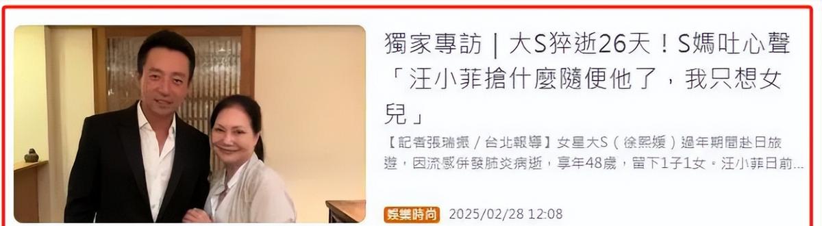 还记得大S去世的那几天,S妈在社交媒体上连发多条动态,字里行间充满了愤怒和不甘。