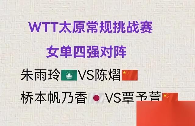 女单方面,同样有两位选手成功进入到四强,其中一位是朱雨玲,而另一位则是陈熠。