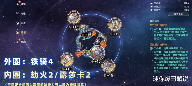 遗器方面,基本可以无脑选择铁骑+劫火,