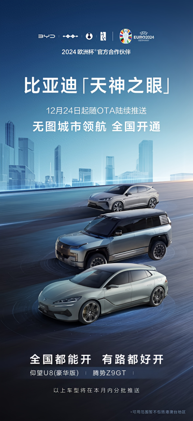 2024年12月24日,比亚迪迎来了一个重要的里程碑——其高阶智能驾驶辅助系统“天神之眼”开始陆续进行OTA推送,标志着无图城市领航(CNOA)功能在全国范围内的正式开通。作为新能源汽车领域的领军者,比亚迪一直致力于推动智能驾驶技术的发展。此次升级不仅提升了车辆的智能化水平,还为用户带来了更加便捷和安全的驾驶体验。接下来,我们将深入探讨比亚迪“天神之眼”及其无图城市领航功能的独特魅力。
