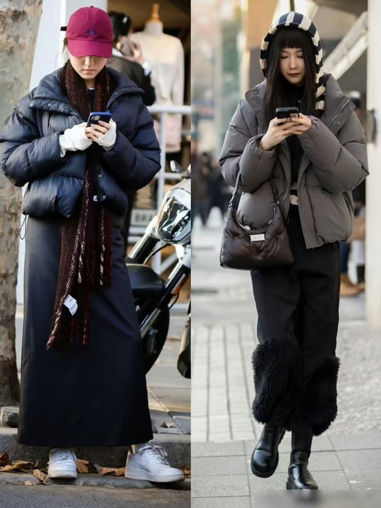 羽绒服本来就比较显大,如果再加上较为紧身的下装就会形成难看的上下干瘪形状,也会让自己整体气质变得非常邋遢甚至显矮。