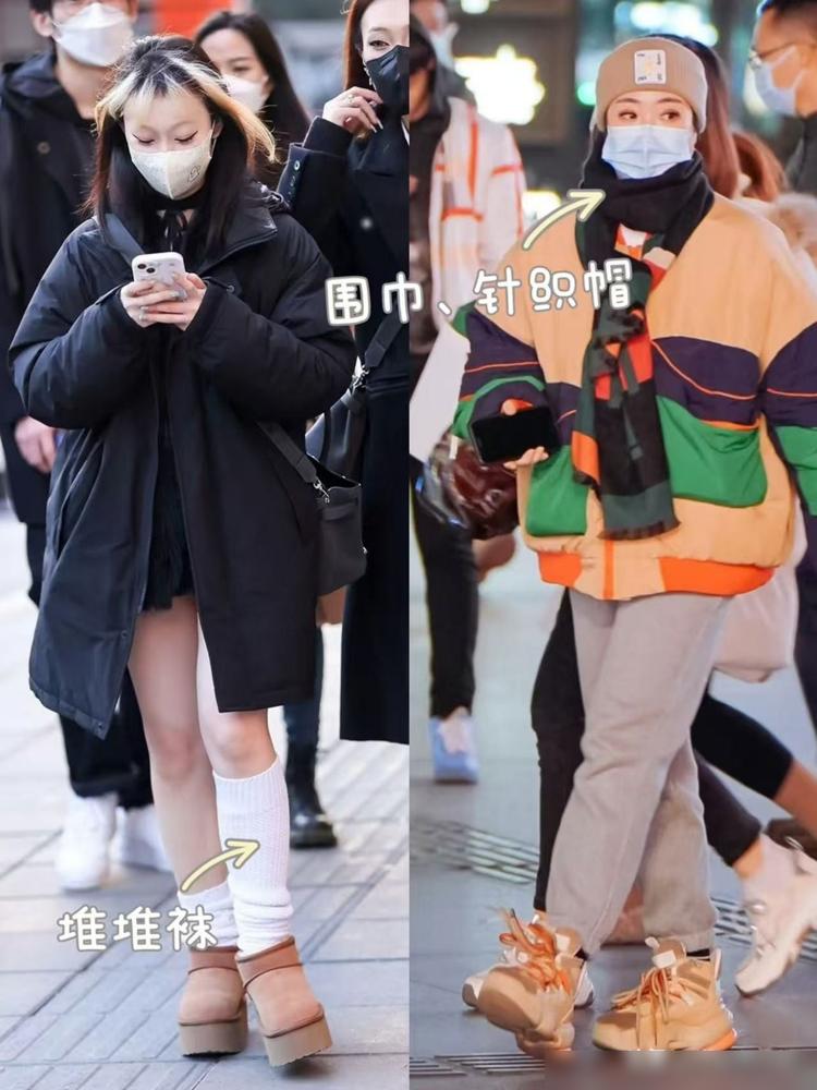 在冬天里穿着厚重臃肿的羽绒服走来走去很难看,所以在冬天里为了增加趣味性,可以选择适当露出一点肤色来打破这种臃肿感。