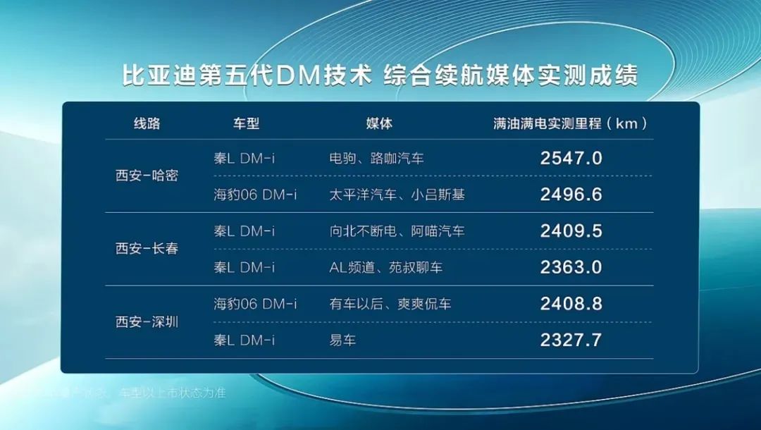 与此同时,搭载第五代DM技术的两款新车秦L DM-i和海豹06 DM-i也在当天上市,起售价分别低至9.98万元 。官方信息表明,两款新车在实测中,百公里油耗均小于2.5L,综合续航里程均超过2300KM。