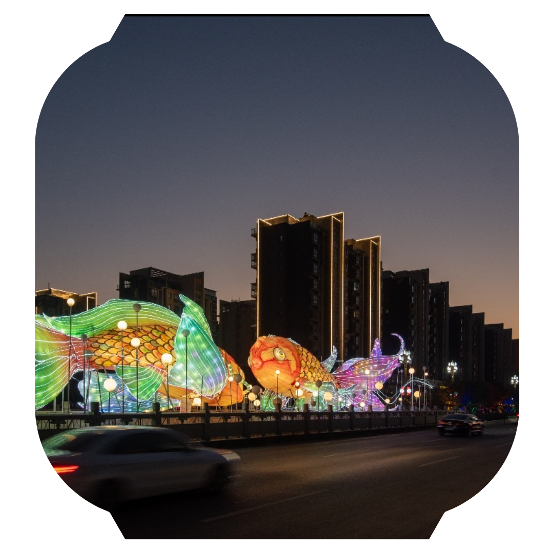 位于交通西路桥上的 锦鲤灯组