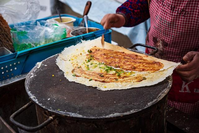 五、天津煎饼果子 俗话说得好,“一天之计在于晨”,但到了天津,这句话恐怕要稍作改动,变成“一天之计在于煎饼果子”。对于天津人来说,早晨的开始,往往是从一个热气腾腾、香气四溢的煎饼果子开始的。那金黄的煎饼、香脆的油条、新鲜的蔬菜,还有那独特的酱料,每一样都是天津人心中的美食记忆。
