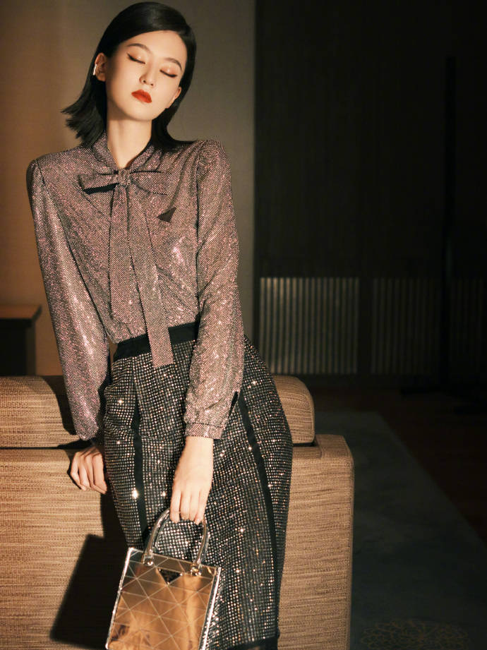 乔欣利落短发配流光衬衫复古红唇优雅迷人