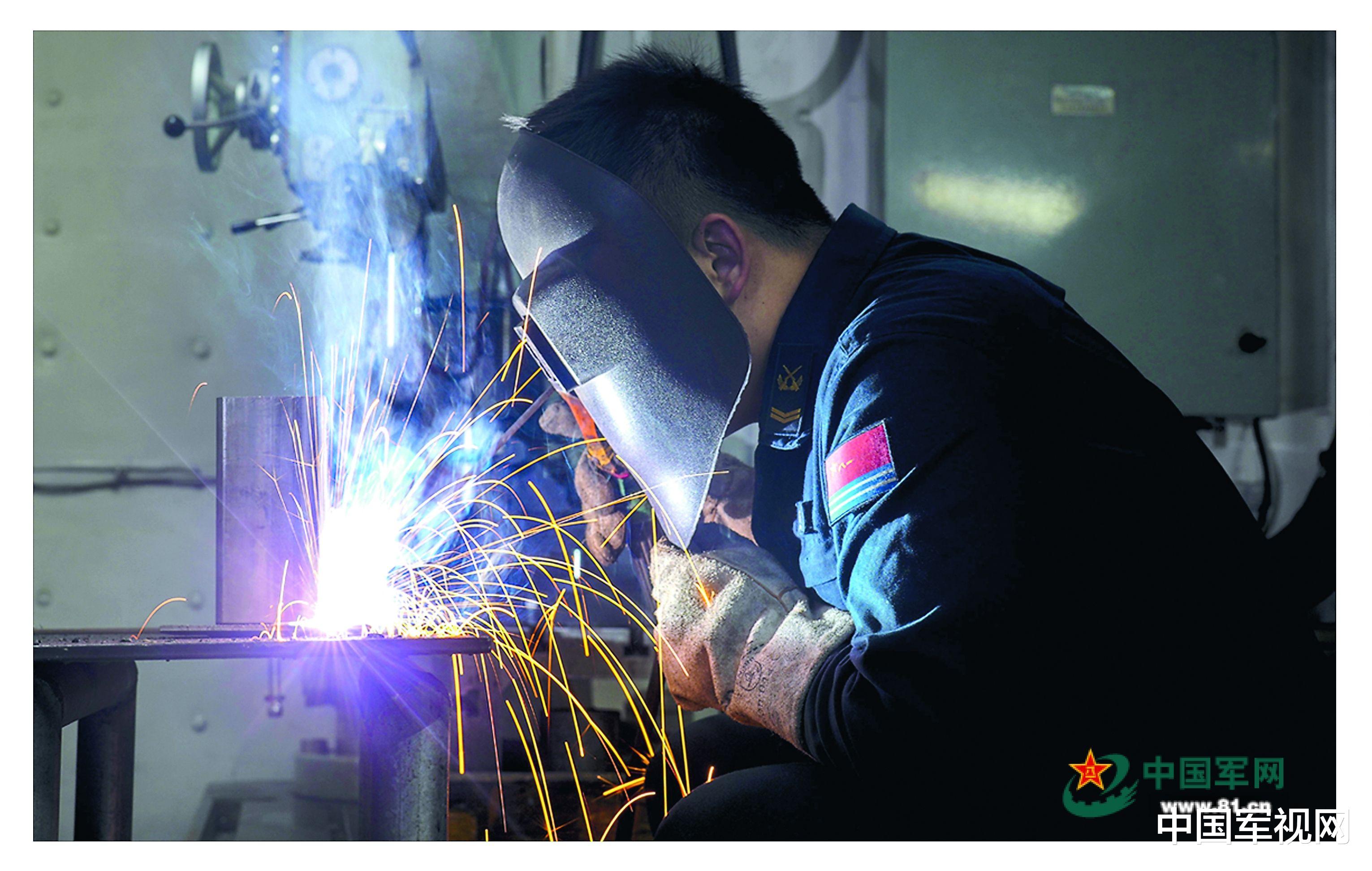 “我从小就对机械感兴趣。在航母上干着自己热爱的工作,我觉得很光荣。”扎根深舱十余年,张伟成长为一名高级焊工。