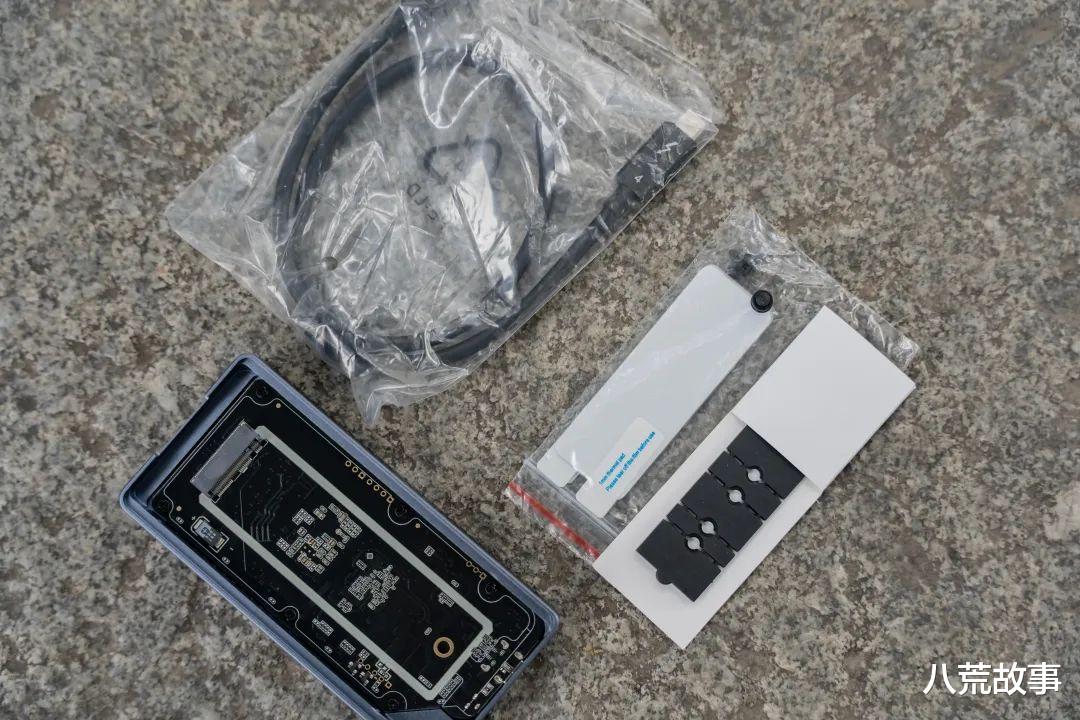 此外,散热同样也是一个值得关注的问题,由于固态硬盘读写速度较快,因此运行时很容易发热,好在阿卡西斯TBU405ProM1是全铝合金外壳,导热速度快,加上内置主动散热风扇,对散热表现有不小加持,而且硬盘盒还配有散热贴,也是非常贴心了。