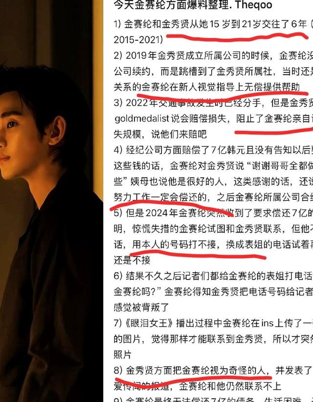 分手那个月,经纪公司给金赛纶开出了 7 亿韩元的账单,里面有 “演技培训费”“舆情管理费” 这些有争议的项目。