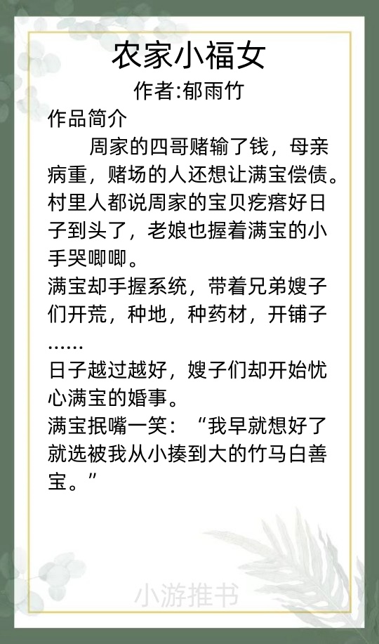 07.《农家小福女》 作者:郁雨竹 //字数:735w