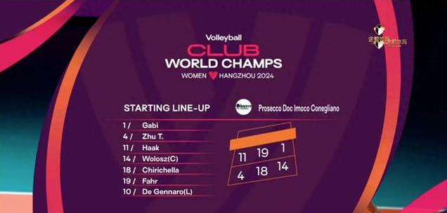 12月21日晚,2024女排世俱杯第二场半决赛,朱婷加盟的科内利亚诺女排在意大利德比中迎战埃格努领衔的米兰。双方首发阵容如下: