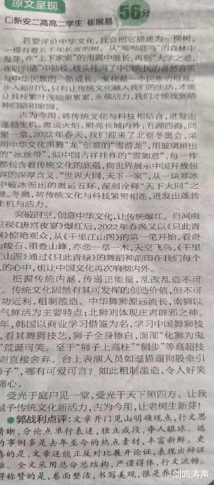 (2021-2022学年上学期高二期末考试新安二高学生作文范文,发表于洛阳教育“高中生”专版)
