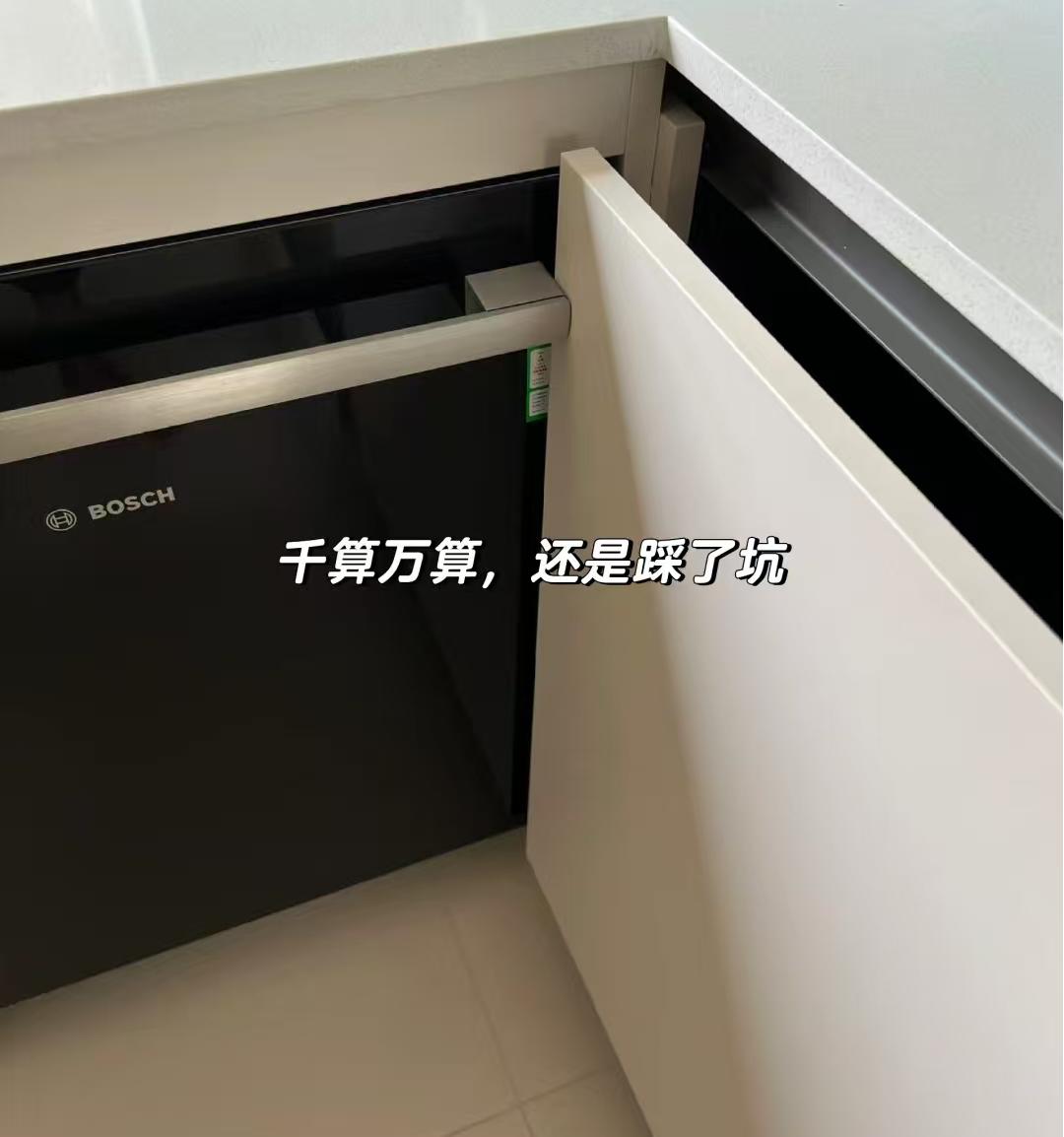 整个厨房的设计还算可以,以为可以完美避坑了,结果洗碗机安装好后,洗碗机柜门上的把手完美的把侧面柜门挡住了,千算万算,还是入坑了。
